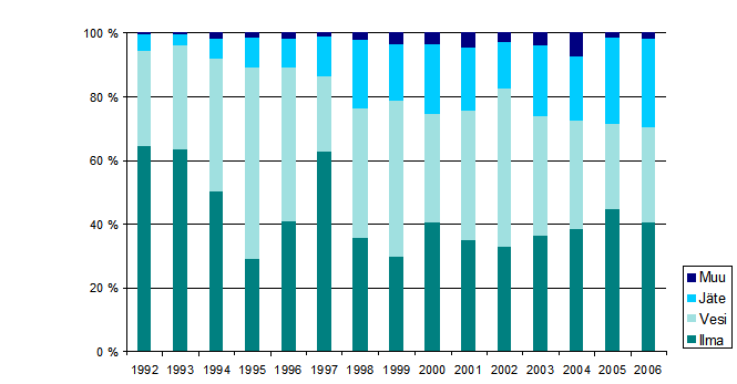 Kuvio 2. Ympäristönsuojeluinvestointien kohdentuminen 1992-2006