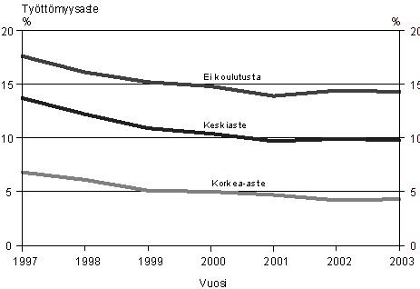 Lähde: Työvoiman koulutus ja ammatit 1997-2003, Tilastokeskus, Työvoimatutkimus