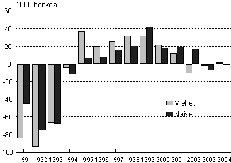 Lähde: Työvoimatilasto 2004, vuosikatsaus. Tilastokeskus