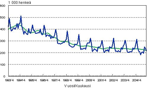 Työttömät, trendi ja tasoittamaton sarja