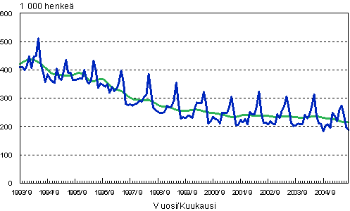 Työttömät, trendi ja tasoittamaton sarja