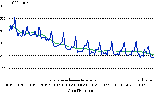 Työttömät, trendi ja tasoittamaton sarja