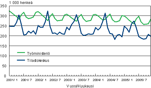 Työttömät Tilastokeskuksen työvoimatutkimuksen ja työministeriön työnvälitystilaston mukaan