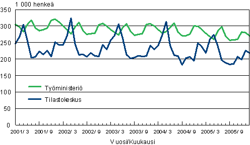 Työttömät Tilastokeskuksen työvoimatutkimuksen ja työministeriön työnvälitystilaston mukaan