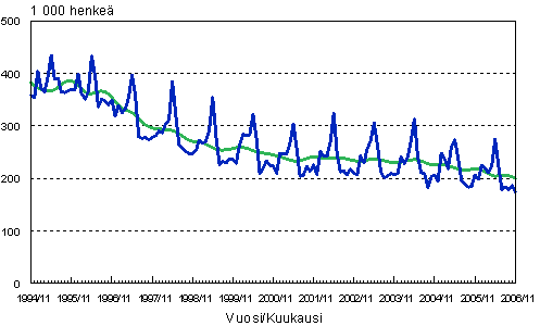 Työttömät, trendi ja tasoittamaton sarja