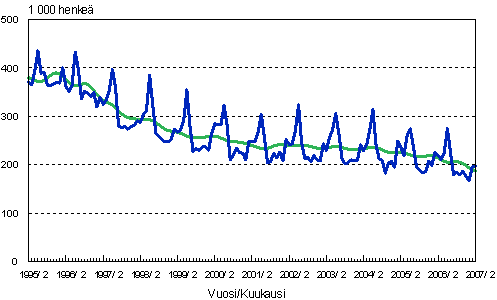 Työttömät, trendi ja tasoittamaton sarja