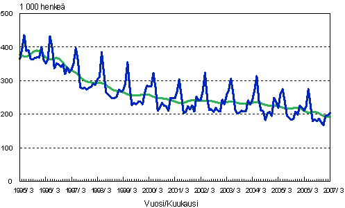 Työttömät, trendi ja tasoittamaton sarja