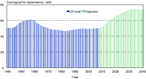 Demographic dependency ratio 1940 - 2040