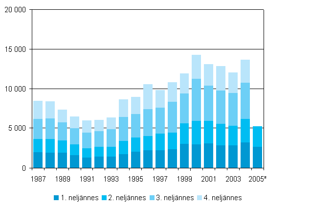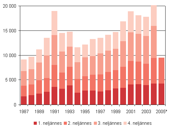Maastamuutto neljännesvuosittain 1987 - 2005, 2. neljännes 2005
