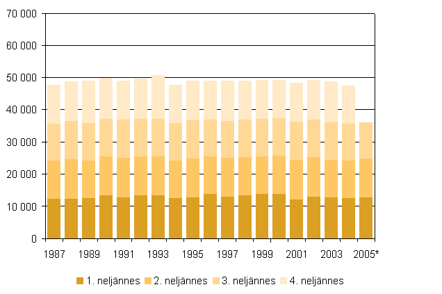 Elävänä syntyneet neljännesvuosittain 1987 - 2005, 3. neljännes 2005
