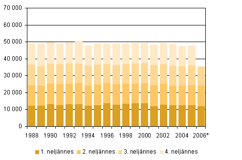 Elävänä syntyneet neljännesvuosittain 1988 - 2006, 3. neljännes 2006