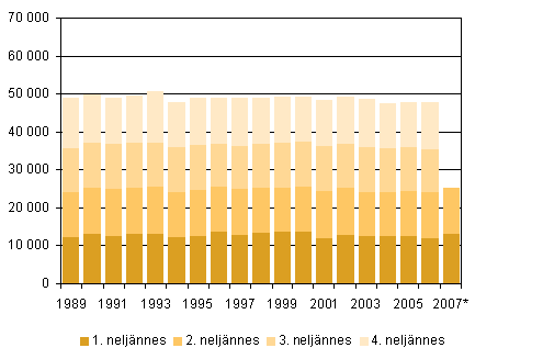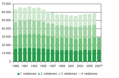Elävänä syntyneet neljännesvuosittain 1989 - 2007, 2. neljännes 2007