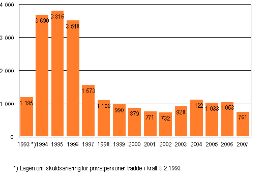 Källa: Skuldsaneringar 2007, 1:a kvartalet. Statistikcentralen