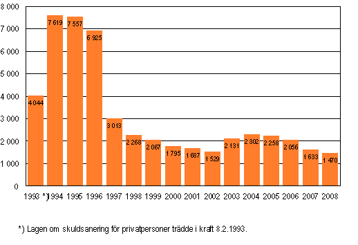 Källa: Skuldsaneringar 2008, 2:a kvartalet. Statistikcentralen