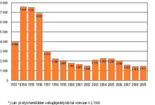 Lähde: Velkajärjestelyt 2009, 2. vuosineljännes. Tilastokeskus