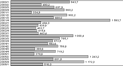 Lähde: Rahoitusmarkkinoiden kuukausisarjat, toukokuu 2006. Tilastokeskus