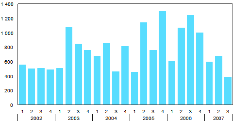 - Valtion takaukset kolmas neljännes 2007, milj. euroa (21.11.2007)
