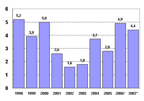 - Bruttokansantuote kasvoi 4,4 prosenttia (29.2.2008)