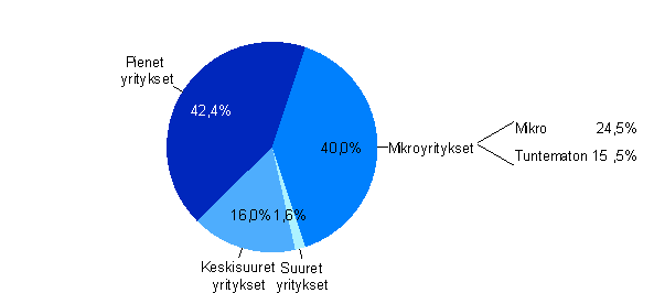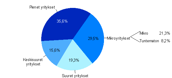 | Pieni yritys | 31 818 | 12,7 | 21,2 | 28,0 | 24,5 |