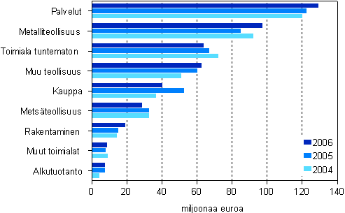 Maksetut lainat 1) ja pääomalainat toimialoittain 2004-2006