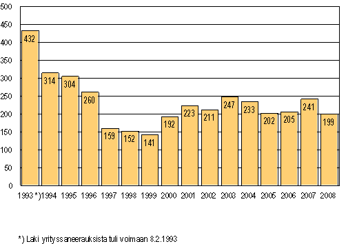 Lähde: Yrityssaneeraukset 2008, 3. vuosineljännes. Tilastokeskus