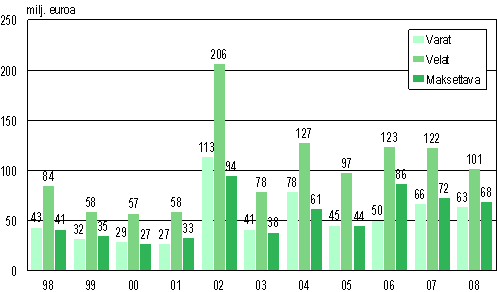 Varat ja velat sekä maksettavaksi määrätyt summat yhteensä vuosina 1998-2008 vahvistetuissa yrityssaneerausohjelmissa