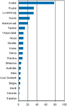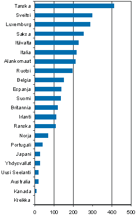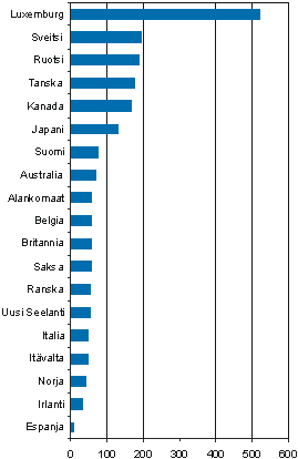 Talouden kokoon suhteutetussa vertailussa Suomi on samalla sijaluvulla eurooppalaisessa vertailussa. Suomen sijoitus on sama, lasketaan suhde sitten miljardeissa USA:n dollareissa tai EU:n ostovoimakorjatuilla luvuilla.