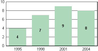 Väkivallan osalta ei kehitys ollut yhtä myönteistä sillä siihen osallistuminen lisääntyi vuoteen 2001 asti, mutta on siitä lähtien vähentynyt.