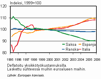 Kuvio 3. Euroalueen maiden reaaliset efektiiviset valuuttakurssit