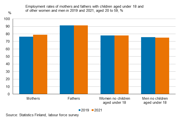 - The employment rate of fathers remained in 2021 on the same level as in 2019.