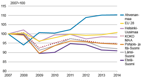 Kun tarkastellaan kehitystä vuodesta 2007, niin Ahvenanmaa on ainoa alue, joka on toipunut Euroopan Unionia ripeämmin. Suomen talouden kannalta harmillisesti Ahvenanmaa on vain niin pieni suuralue, ettei siitä ole koko maan talousveturiksi.