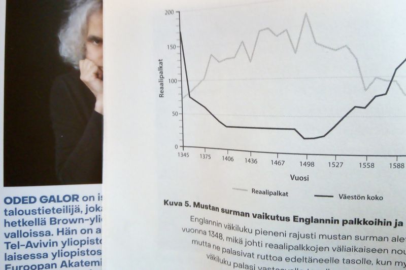 Miten ihmiskunta vapautui malthusilaisesta köyhyysloukusta? Taloustieteen professori Oded Galor vastaa kirjasssaan Ihmiskunnan nousu – Vaurauden ja eriarvoisuuden juuret (Bazar 2022) vakuuttavin argumentein ja tilastokuvioin.