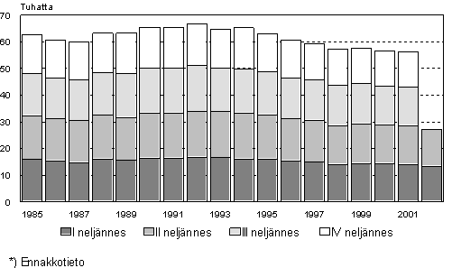 Elävänä syntyneet neljännesvuosittain 1985-2002*