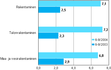 Lähde: Liiketoiminnan kuukausikuvaajat 2004, elokuu. Tilastokeskus