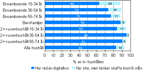 Av tv-hushållen med två eller flera vuxna som är medelålders eller äldre hade över 90 procent övergått till digitaltid i november. På basis av köpplanerna ser det ut som om högst 5 procent av alla flerpersonshushåll eller barnfamiljer skulle sakna digitalbox ännu i vår.