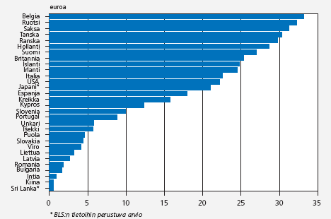 Teollisuudessa tehty työtunti maksoi vuonna 2004 Suomessa keskimäärin noin 27 euroa, kolme prosenttia enemmän kuin euroalueella keskimäärin ja 24 prosenttia enemmän kuin EU:ssa keskimäärin. Suomea kalliimman työvoiman euromaita olivat Benelux-maat, Saksa ja Ranska. Suomea kalliimman työvoiman maihin lukeutuivat myös muut Pohjoismaat, lukuun ottamatta Islantia.