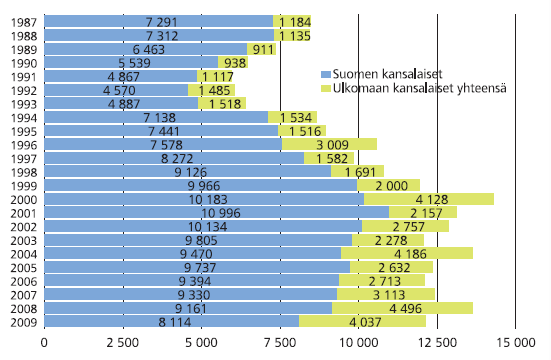 Kuvio 1. Tulomuutto kansalaisuuden mukaan 1987-2009