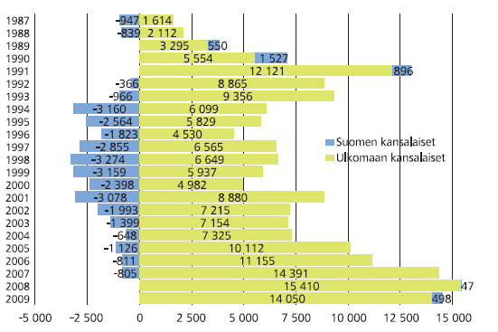 Kuvio 3. Nettomuutto 1987-2009 kansalaisuuden mukaan