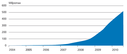 Kuvio 1. Facebookin käyttäjät 2004 - 2010