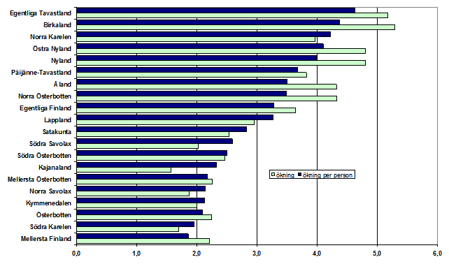 Den disponibla inkomsten per person översteg i nio landskap genomsnittet för hela landet. Ökningen i Egentliga Tavastland, Birkaland och de andra landskapen som klarat sig bättre än genomsnittet för hela landet härrör till största delen från ökningen av löntagarersättningarna, som var kraftigast i Östra Nyland (6,1 %). Näst snabbast var ökningen i Birkaland (5,8 %) och också i Egentliga Tavastland (5,5 %) steg den rejält över genomsnittet.