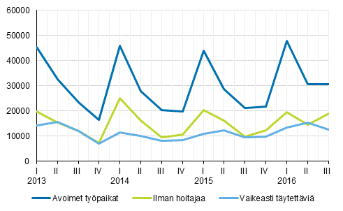Lähde: Avoimet työpaikat 2016, 3. neljännes. Tilastokeskus