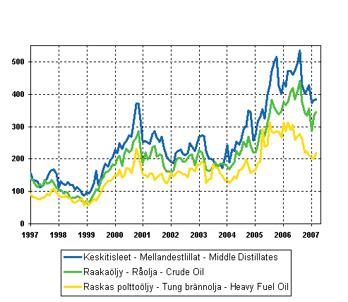 Figure 07. Import Prices of Oil 1997-, €/t