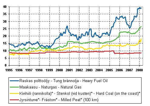 * Priserna på stenkol och frästorv är inte jämförbara sinsemellan.