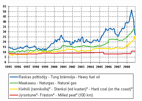 * Prices of hard coal and milled peat are not mutually comparable.