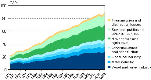 Electricity consumption by sector 1970-2006