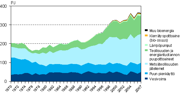 Uusiutuvien energialähteiden käyttö 1970-2007