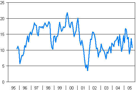 Konsumenternas förtroendeindikator 10/1995-9/2005