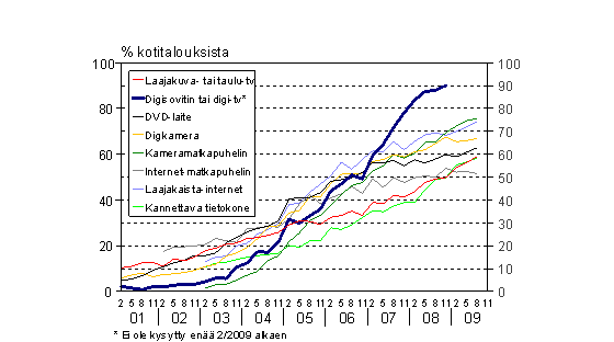 C 6 Uuden viihde-elektroniikan yleistyminen kotitalouksissa 2/2001-8/2009