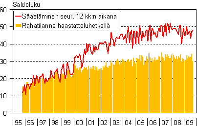A2 Kuluttajien arviot kotitaloutensa säästämismahdollisuuksista seuraavan 12 kk aikana ja rahatilanteesta haastatteluhetkellä 10/1995-9/2009