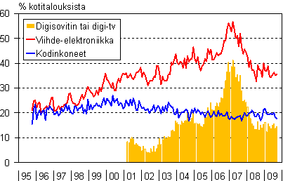 A3 Kotitalouksien aikomukset käyttää rahaa kodintekniikan hankintaan seuraavan puolen vuoden aikana 10/1995-9/2009